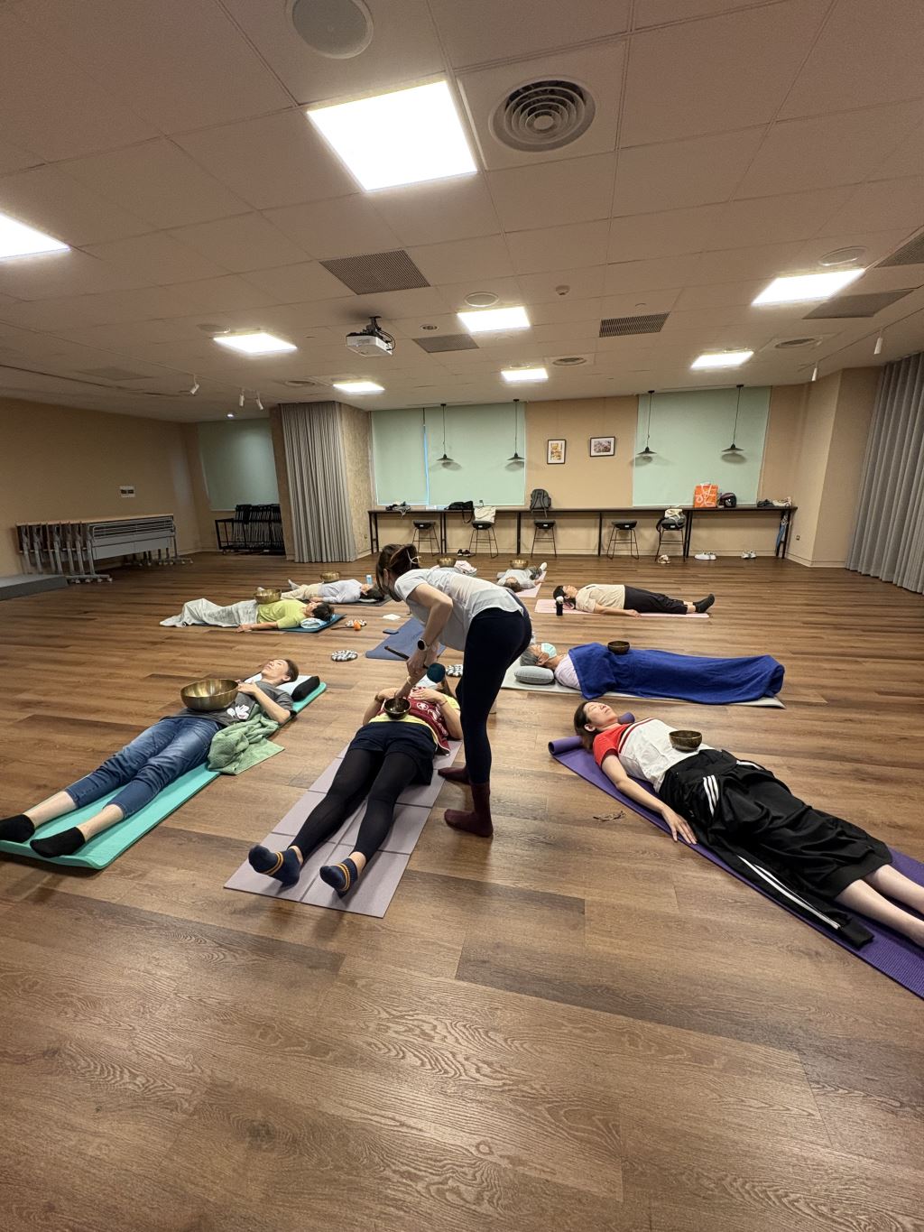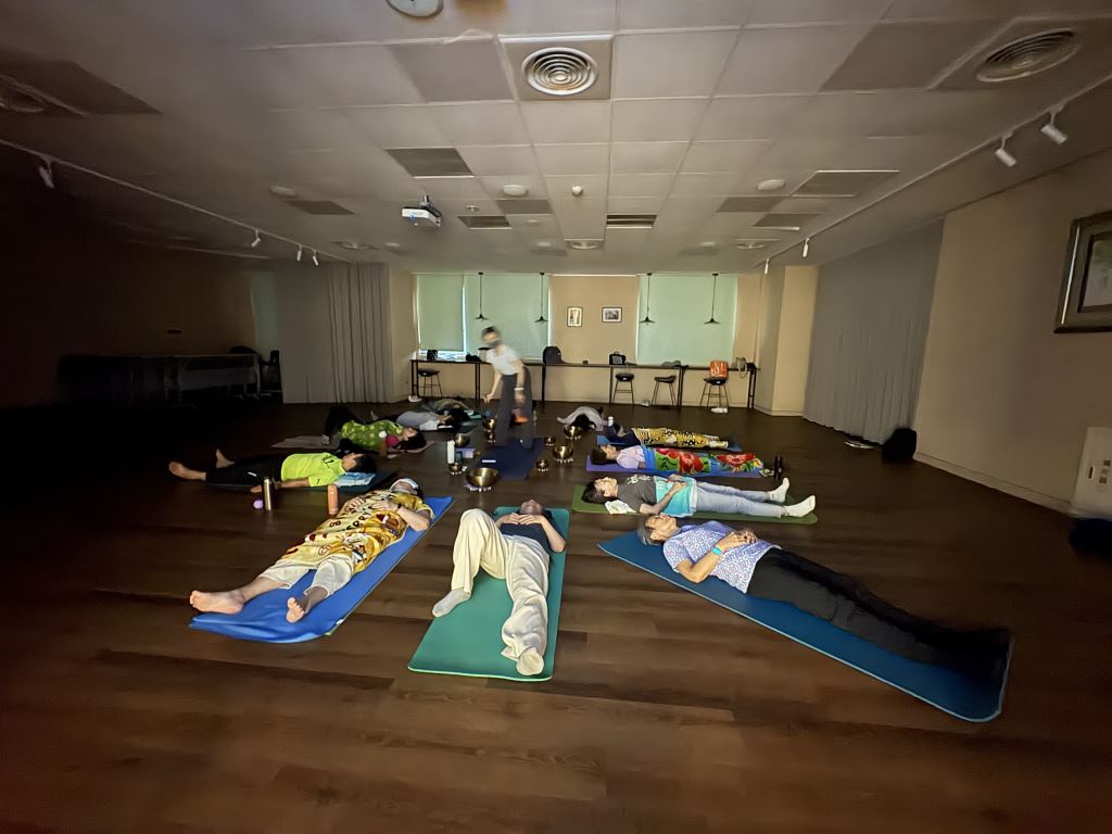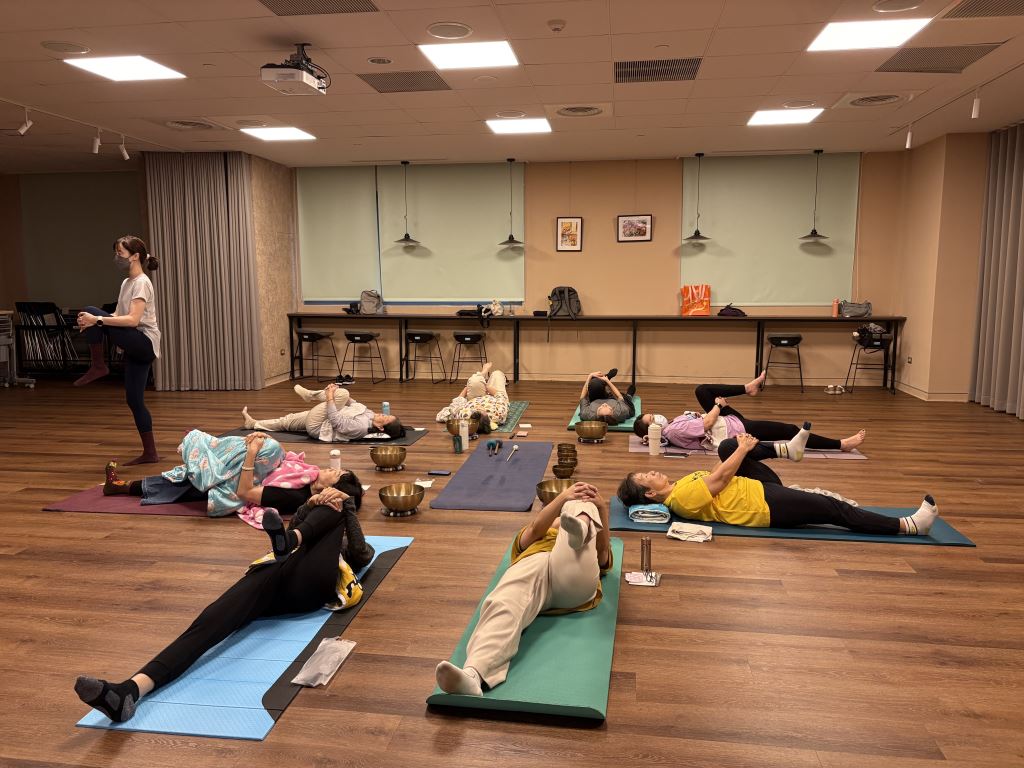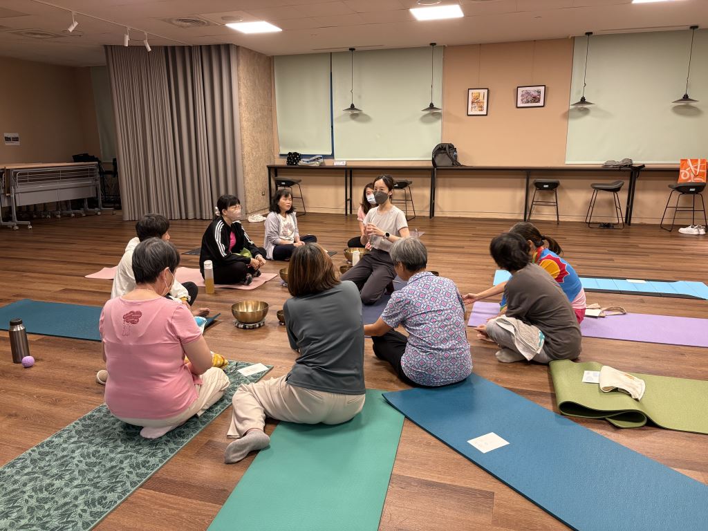 唯一美中不足的地方大概是在醫院上課無可避免地偶爾會有廣播響起,對某些學員造成小小的影響,雖然硬體有無法克服的地方,但Sylvia老師的溫柔聲音與渾厚的頌缽聲還是堅定地陪伴參與的姐妹們度過一段寧靜的心靈之旅!