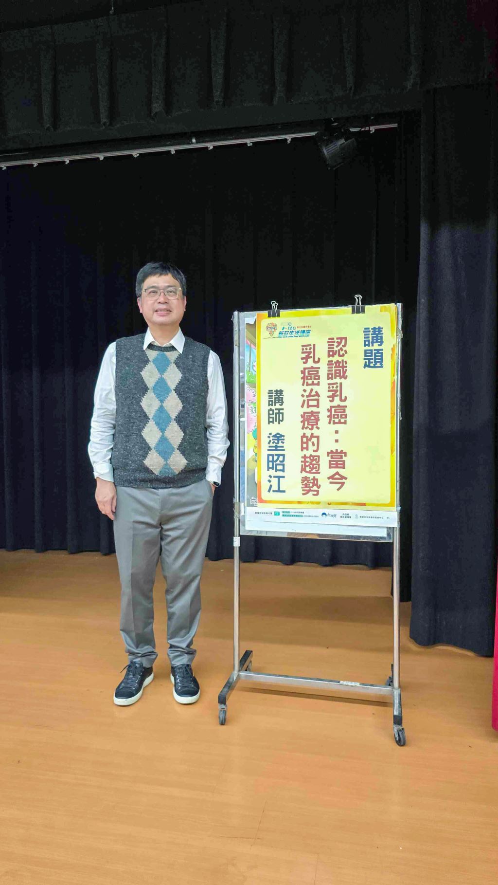 為提升民眾對乳癌之正確認知,並促進婦女健康,本會於新莊地區舉辦生活醫學講座《認識乳癌:當今乳癌治療的趨勢》,邀請本會執行長同時也是輔仁大學附設醫院一般外科主任─塗昭江醫師,針對乳癌的臨床分類、診斷方式與治療策略進行系統性說明。